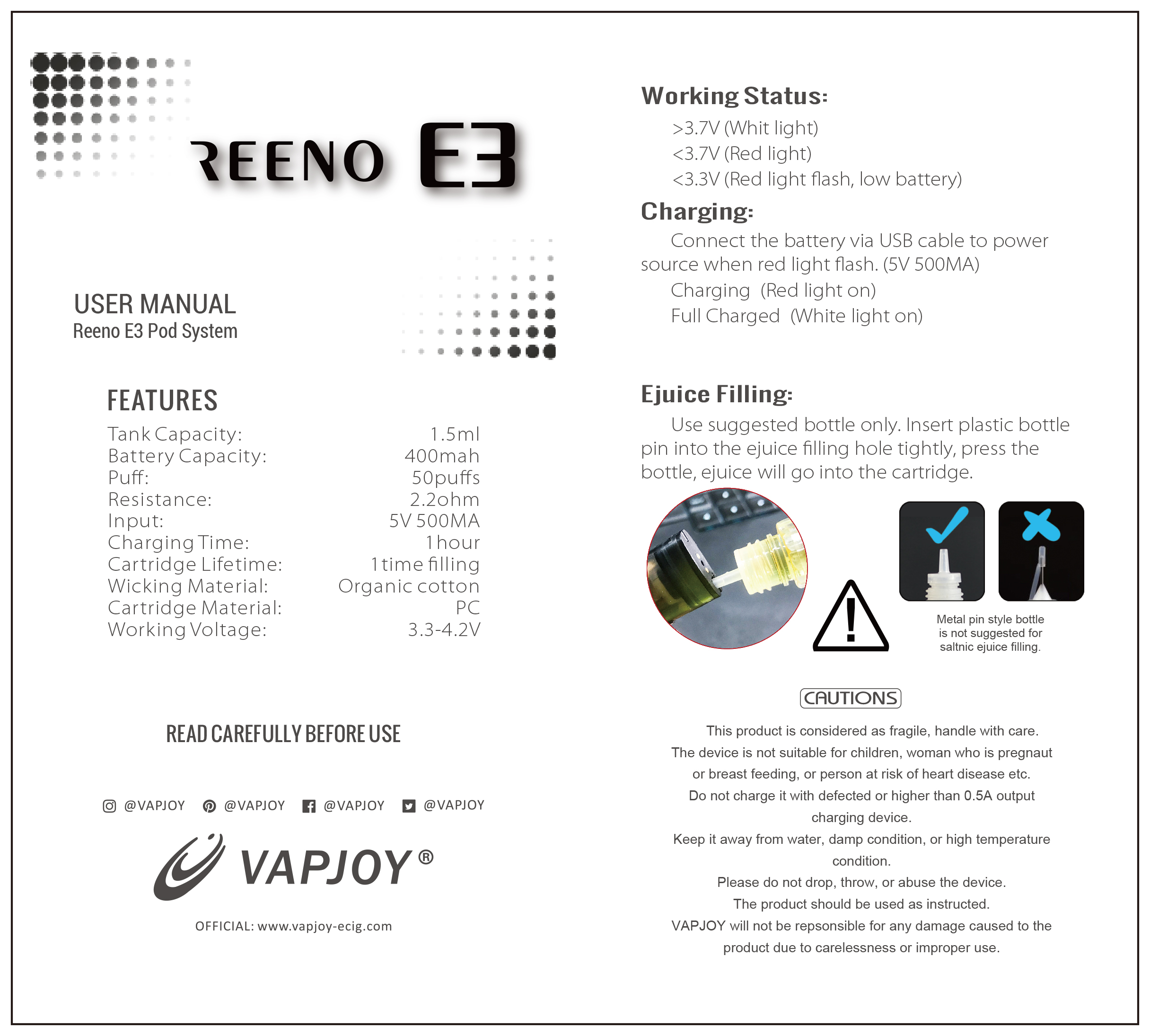Reeno E3 Pod User Manual